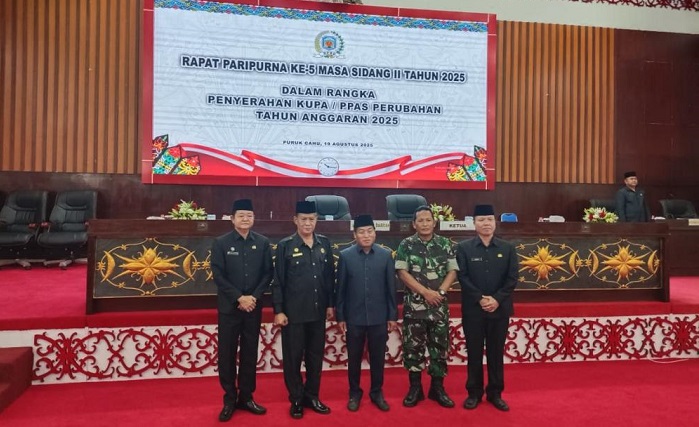INDOPOL MEDIA, Puruk Cahu – Pemerintah Kabupaten Murung Raya melalui Plt. Sekretaris Daerah (Sekda) Sarwo Mintarjo menyerahkan Rancangan Perubahan KUPA–PPAS 2025 kepada DPRD dalam rapat paripurna ke-5, Selasa (19/8/2025).